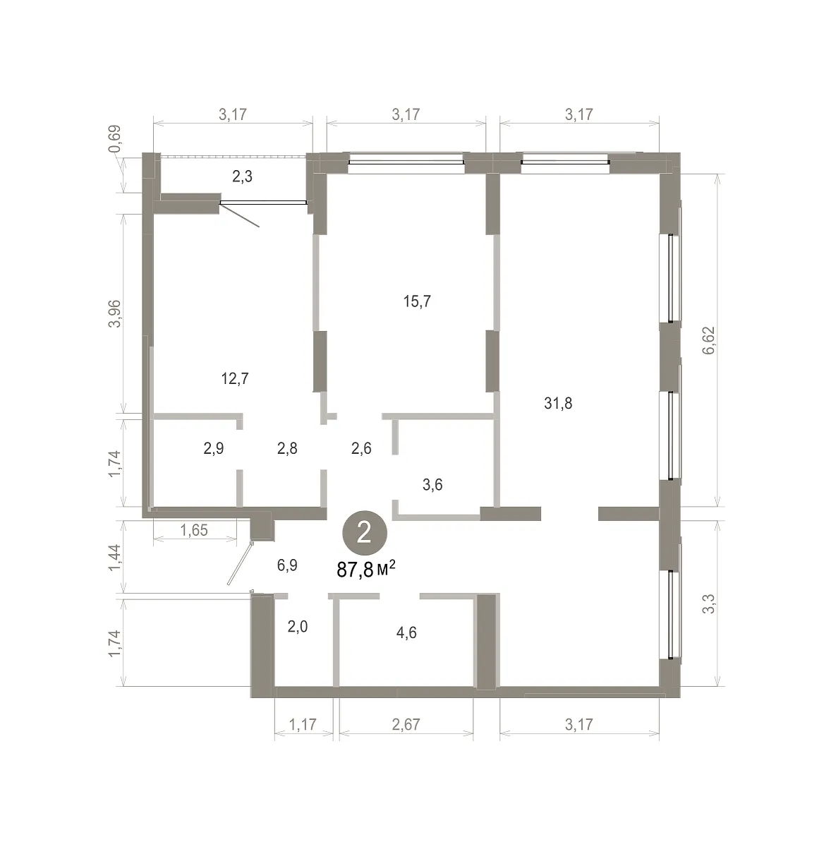 Количество комнат: 2, 87.81 кв.м.