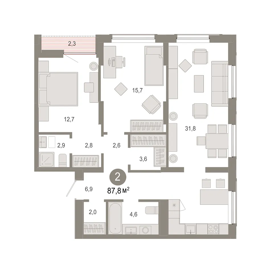 Купить новую двухкомнатную квартиру 87.81 м² на 13/17 этаже в ЖК «Октябрьский на Туре», г. Тюмень за 9920000 ₽ | Агентство недвижимости «Вплюсе.Топ» — Недвижимость России