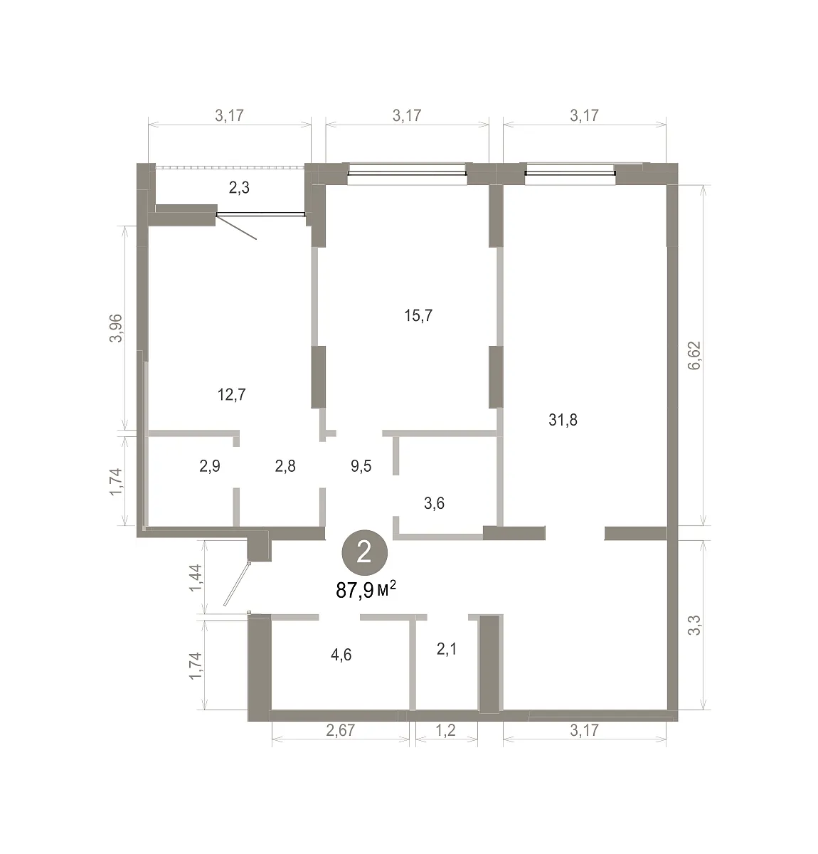 Количество комнат: 2, 87.86 кв.м.