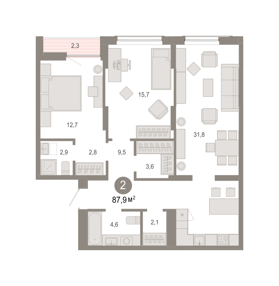 Купить новую двухкомнатную квартиру 87.86 м² на 10/17 этаже в ЖК «Октябрьский на Туре», г. Тюмень за 9610000 ₽ | Агентство недвижимости «Вплюсе.Топ» — Агентство недвижимости "Вплюсе.Топ"