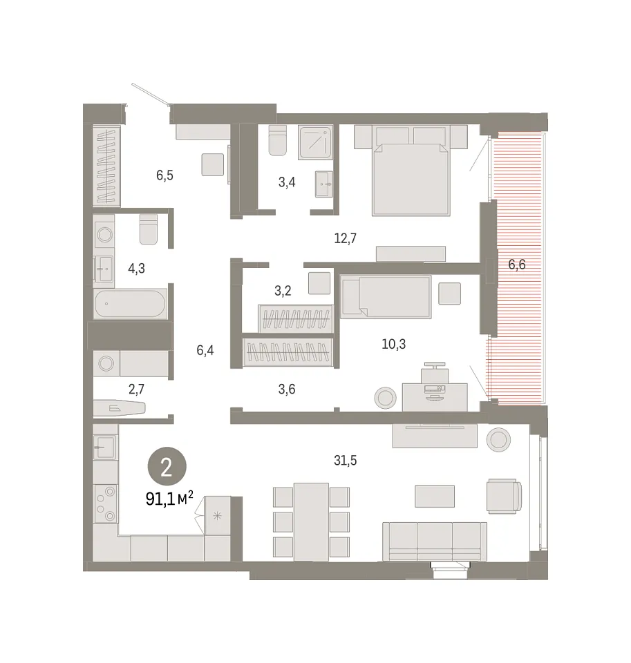 Купить новую двухкомнатную квартиру 91.08 м² на 7/18 этаже в ЖК «Республики 205», г. Тюмень за 12600000 ₽ | Агентство недвижимости «Вплюсе.Топ» — Недвижимость России