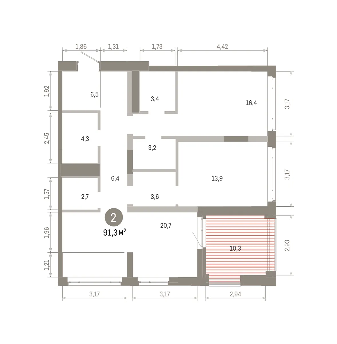 Купить новую двухкомнатную квартиру 91.26 м² на 16/18 этаже в ЖК «Республики 205», г. Тюмень за 13190000 ₽ | Агентство недвижимости «Вплюсе.Топ» — Недвижимость России