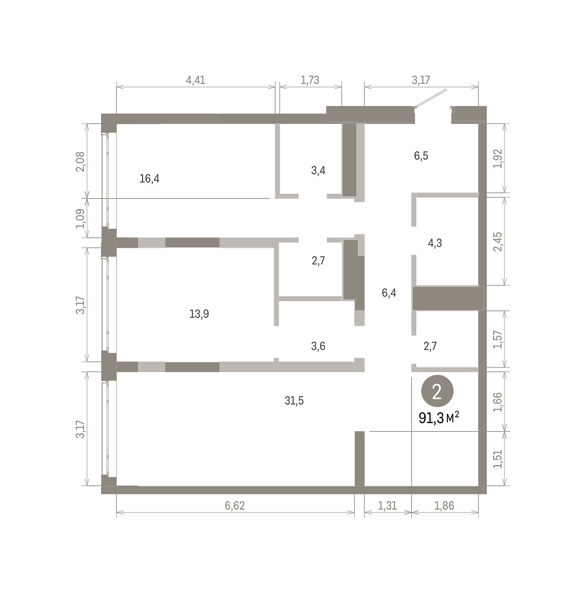 Количество комнат: 2, 91.28 кв.м.