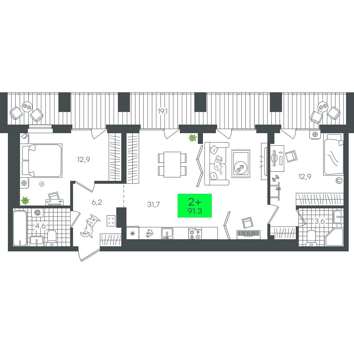 Купить новую двухкомнатную квартиру 91.34 м² на 11/12 этаже в ЖК «Гранд Квартал», г. Тюмень за 11920000 ₽ | Агентство недвижимости «Вплюсе.Топ» — Недвижимость России