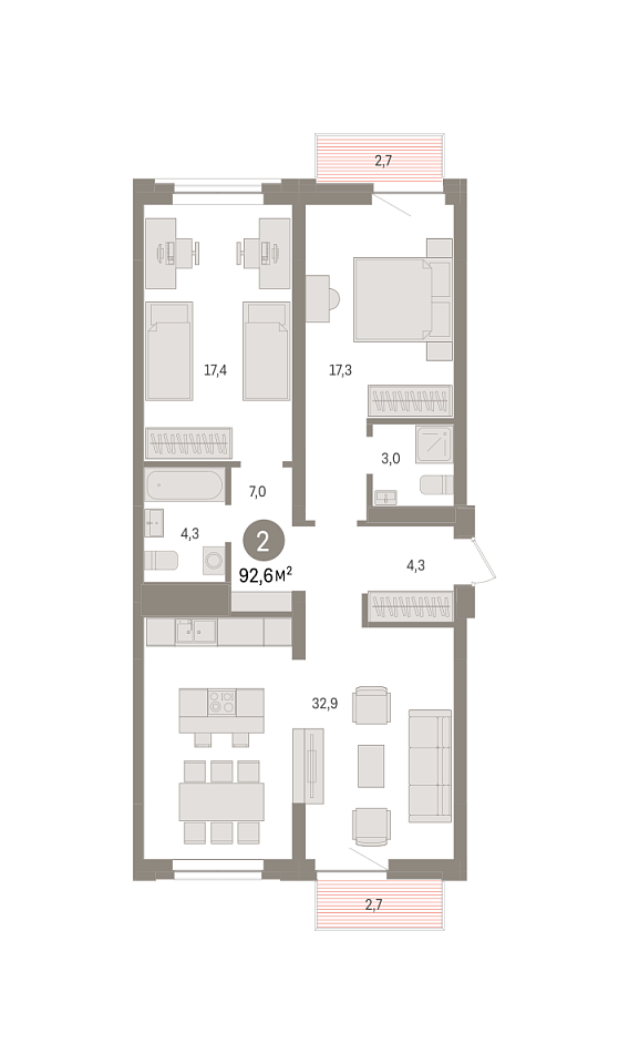 Купить новую двухкомнатную квартиру 91.4 м² на 5/8 этаже в ЖК «Речной порт», г. Тюмень за 13440000 ₽ | Агентство недвижимости «Вплюсе.Топ» — Недвижимость России