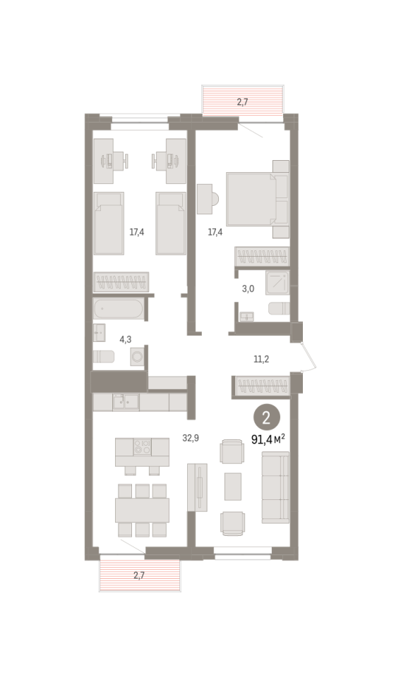 Купить новую двухкомнатную квартиру 91.5 м² на 4/9 этаже в ЖК «Речной порт», г. Тюмень за 12150000 ₽ | Агентство недвижимости «Вплюсе.Топ» — Агентство недвижимости "Вплюсе.Топ"