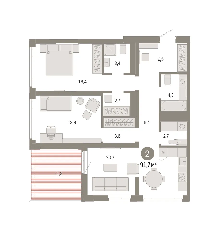 Купить новую двухкомнатную квартиру 91.68 м² на 12/18 этаже в ЖК «Республики 205», г. Тюмень за 13240000 ₽ | Агентство недвижимости «Вплюсе.Топ» — Недвижимость России