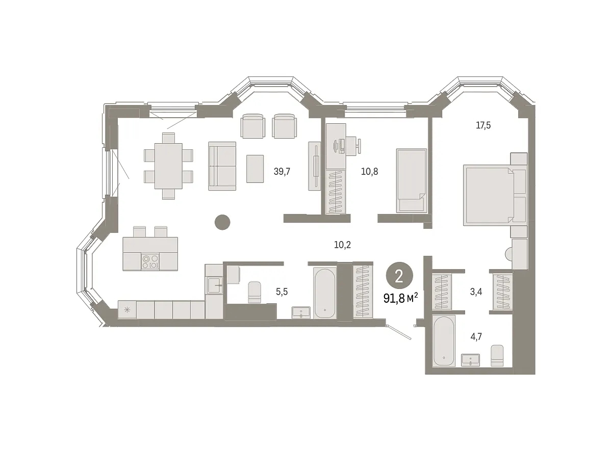 Количество комнат: 2, 91.8 кв.м.