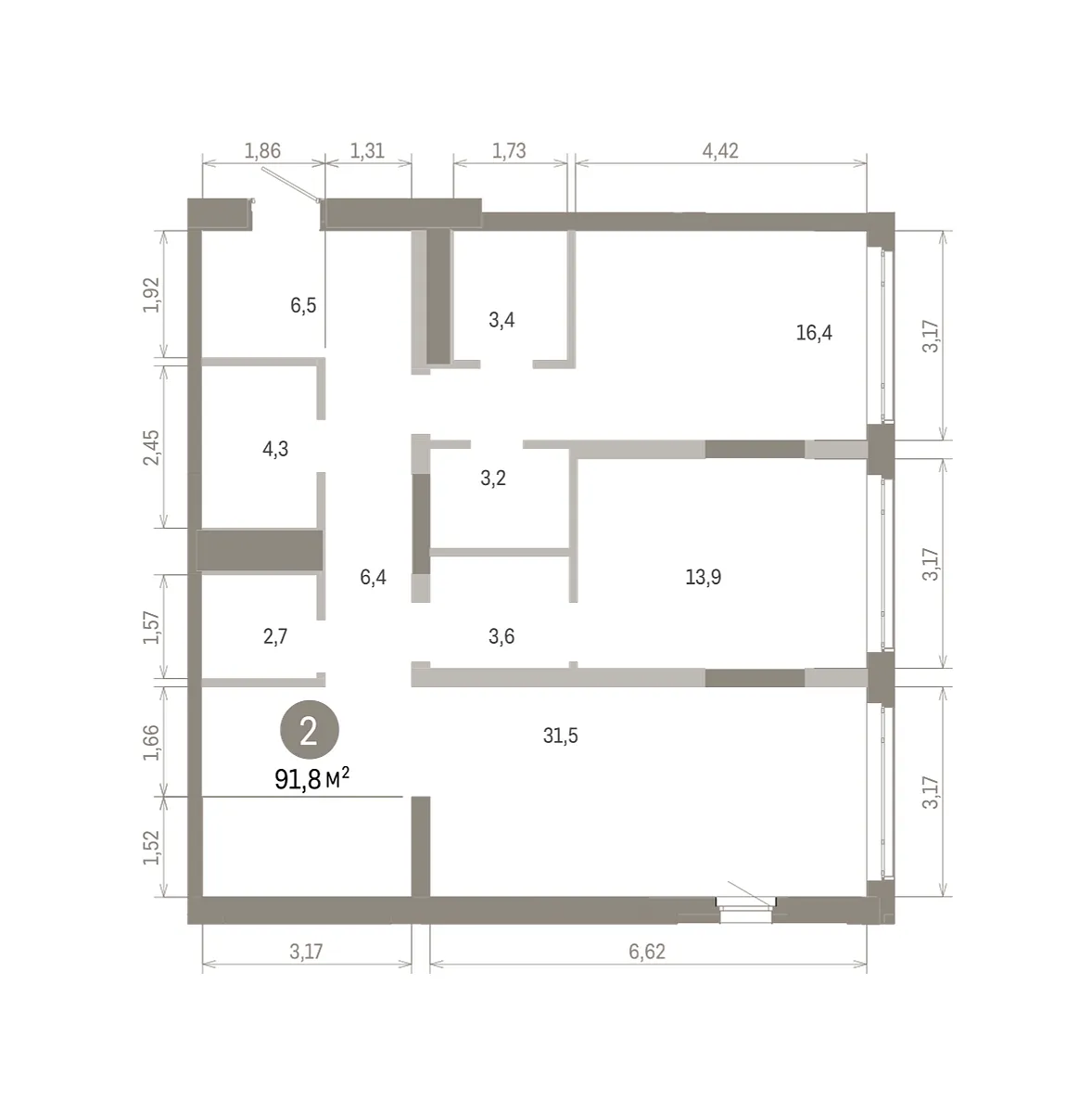 Количество комнат: 2, 91.81 кв.м.
