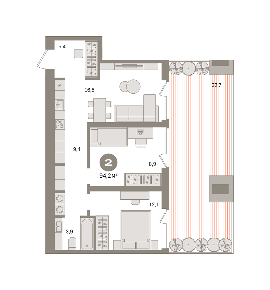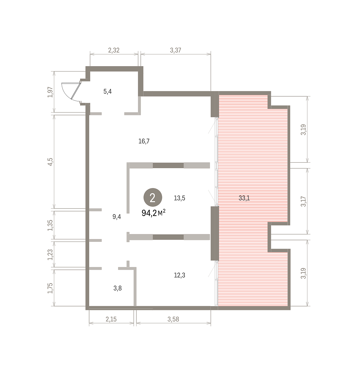 Количество комнат: 2, 93.3 кв.м.