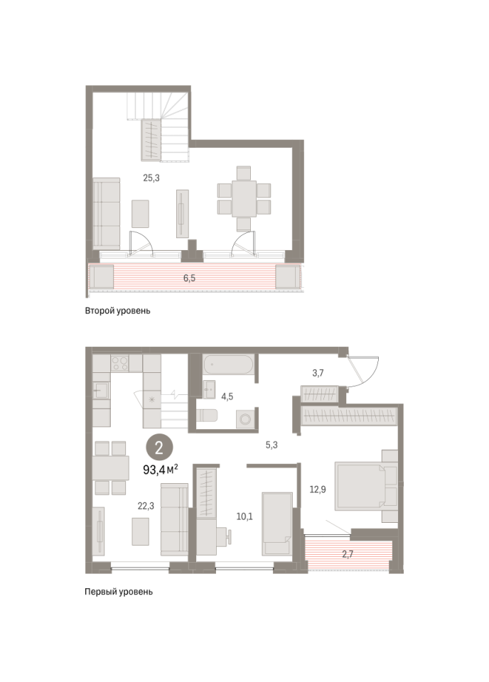 Количество комнат: 2, 93.4 кв.м.