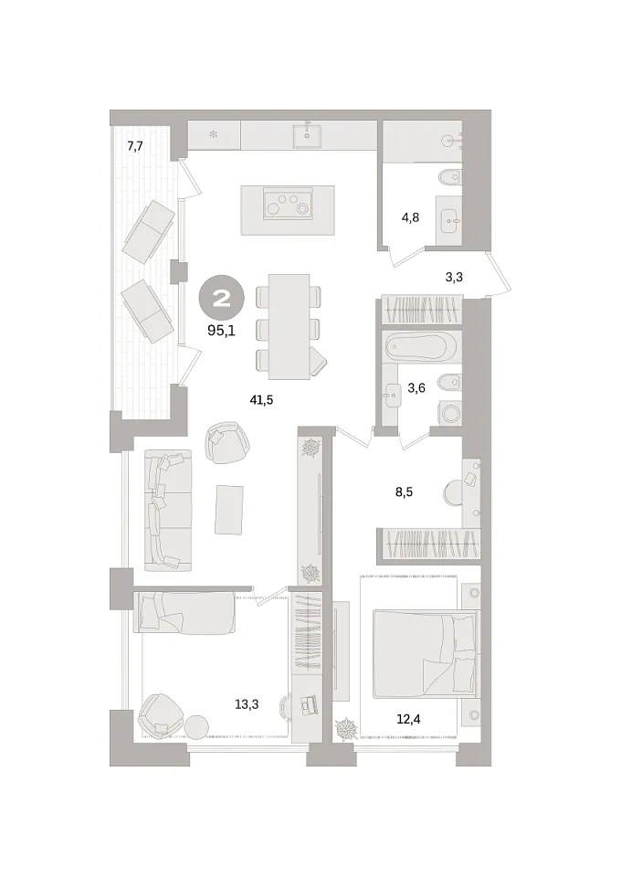 Купить новую двухкомнатную квартиру 95.1 м² на 8/21 этаже в ЖК «Дом «А»», г. Тюмень за 64740000 ₽ | Агентство недвижимости «Вплюсе.Топ» — Недвижимость России