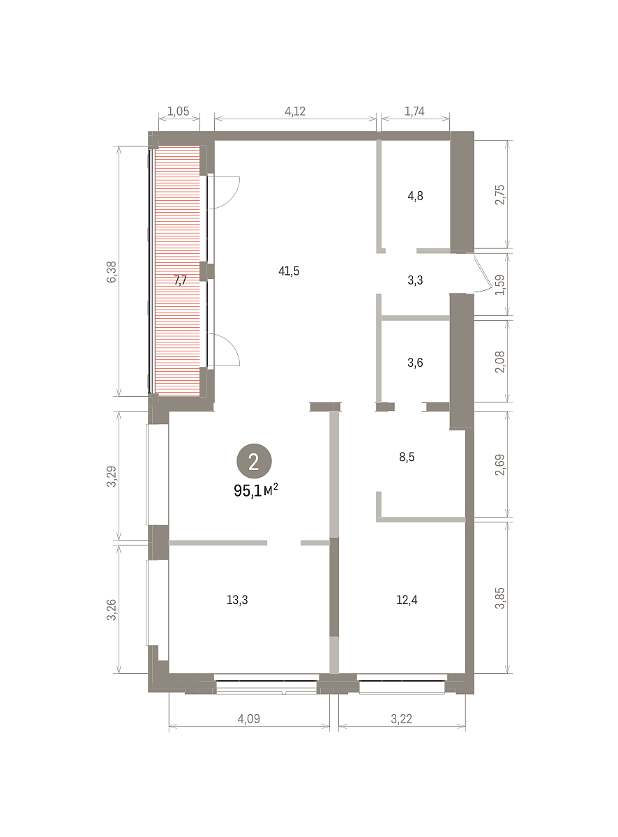 Площадь (общ/жил/кух), м2: 91.5/34.6/27.5