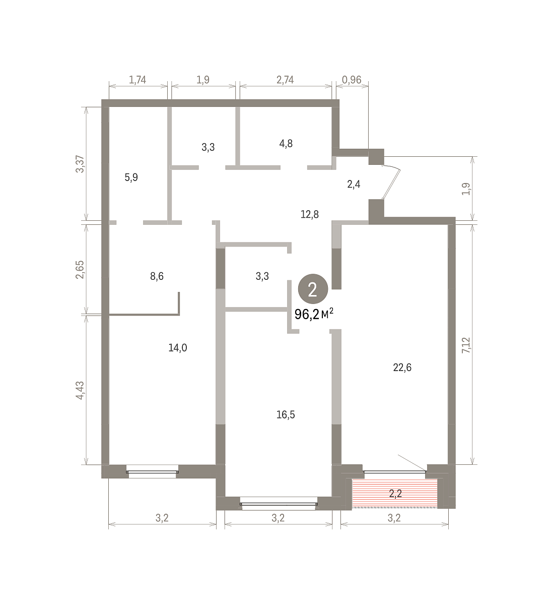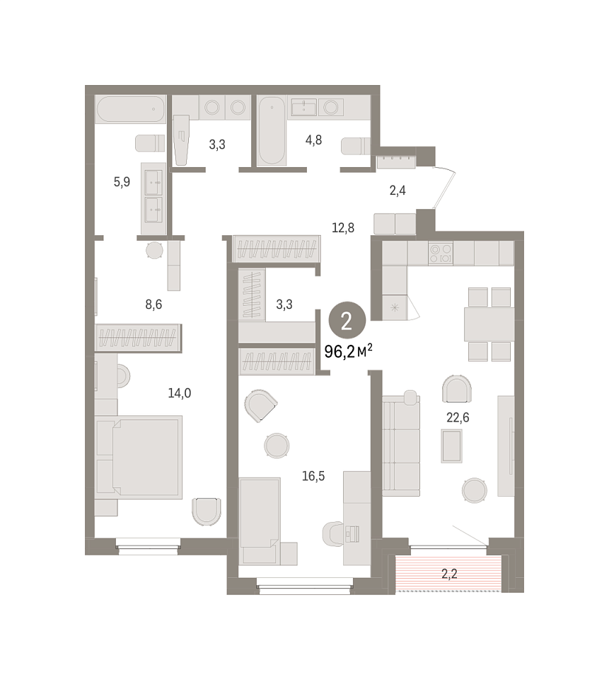 Количество комнат: 2, 96.24 кв.м.