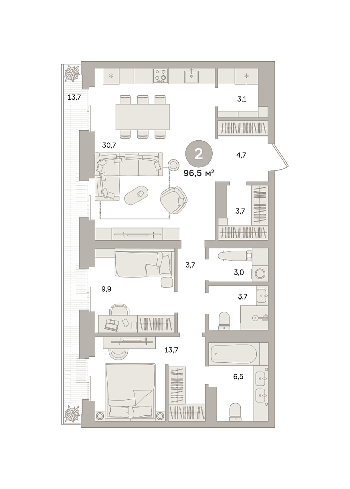Купить новую двухкомнатную квартиру 96.48 м² на 7/24 этаже в ЖК «Квартал «МОНС»», г. Тюмень за 46500000 ₽ | Агентство недвижимости «Вплюсе.Топ» — Недвижимость России