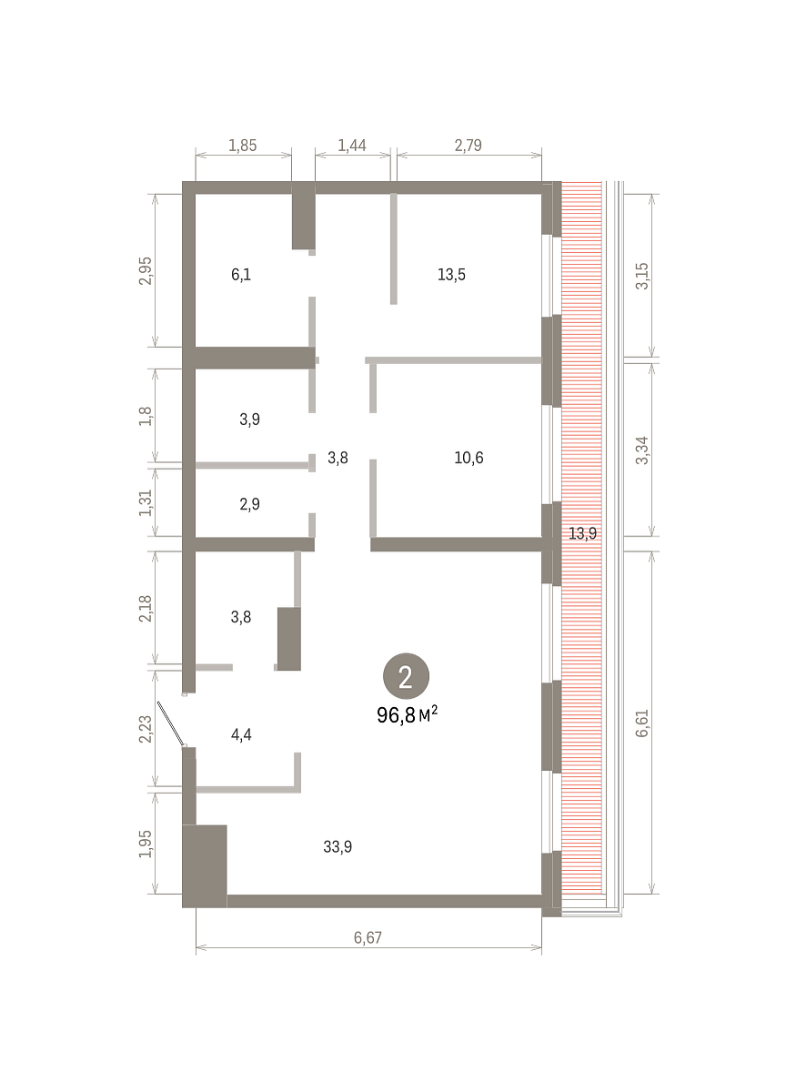 Площадь (общ/жил/кух), м2: 96.48/23.55/30.69