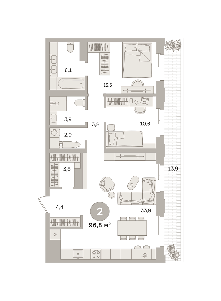 Купить новую двухкомнатную квартиру 96.76 м² на 11/25 этаже в ЖК «Квартал «МОНС»», г. Тюмень за 46700000 ₽ | Агентство недвижимости «Вплюсе.Топ» — Недвижимость России