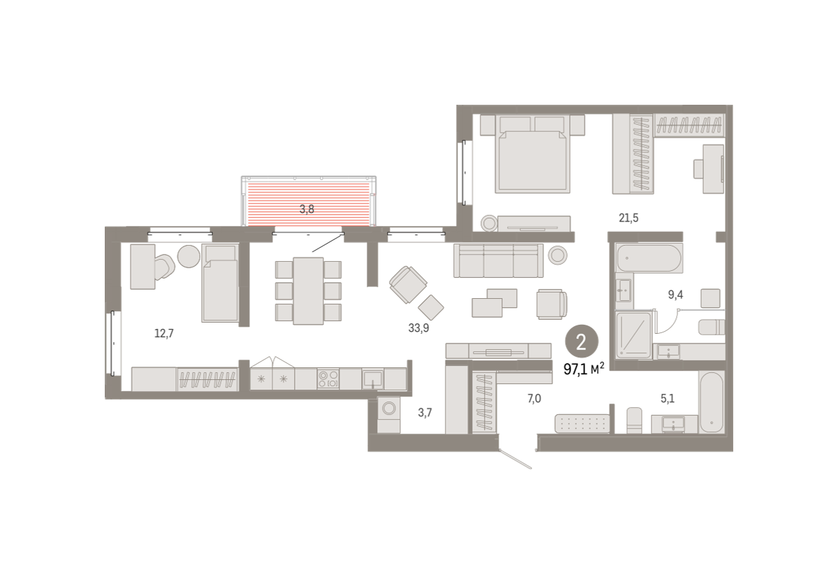 Купить новую двухкомнатную квартиру 97.13 м² на 3/8 этаже в ЖК «Кварталы «На Минской»», г. Тюмень за 14300000 ₽ | Агентство недвижимости «Вплюсе.Топ» — Агентство недвижимости "Вплюсе.Топ"