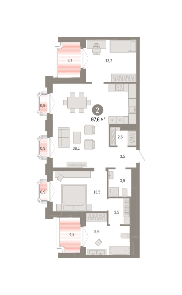 Купить новую двухкомнатную квартиру 97.6 м² на 5/9 этаже в ЖК «На Некрасова», г. Тюмень за 19210000 ₽ | Агентство недвижимости «Вплюсе.Топ» — Агентство недвижимости "Вплюсе.Топ"