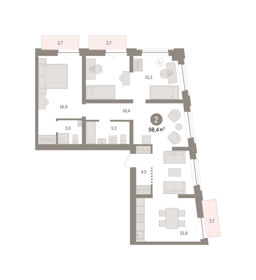 Количество комнат: 2, 98.4 кв.м.