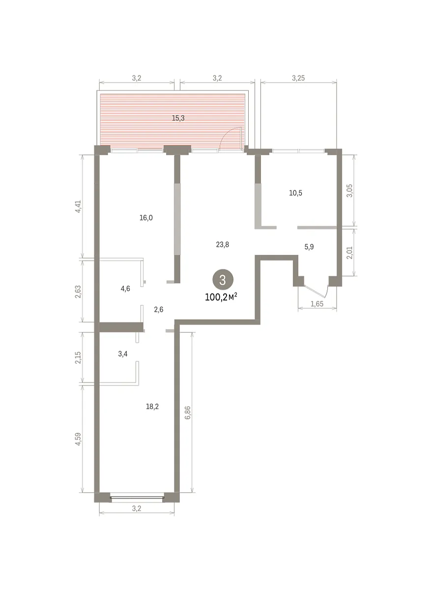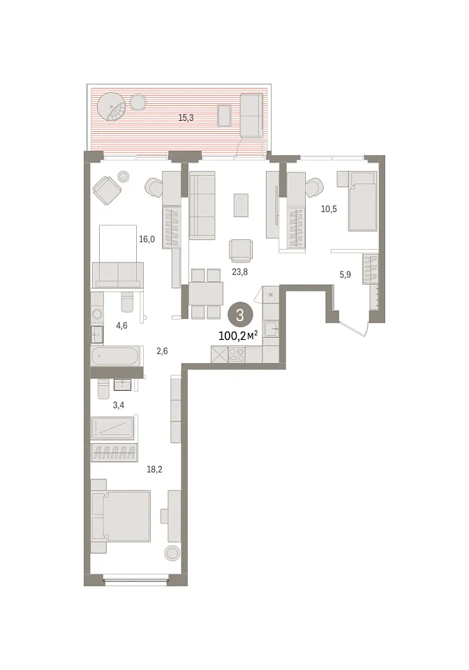 Количество комнат: 3, 100.22 кв.м.