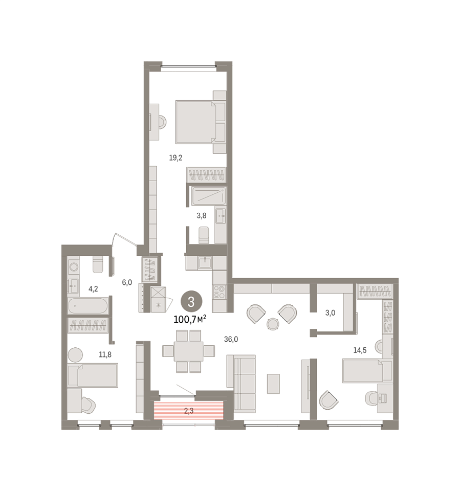 Купить новую трехкомнатную квартиру 100.73 м² на 3/7 этаже в ЖК «Зарека», г. Тюмень за 12790000 ₽ | Агентство недвижимости «Вплюсе.Топ» — Недвижимость России