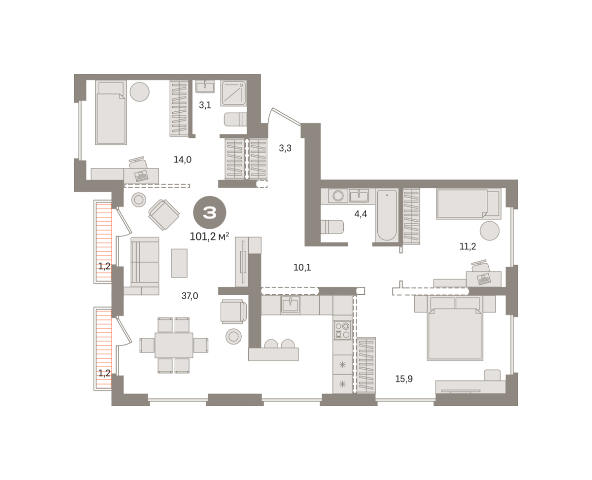 Купить новую трехкомнатную квартиру 101.21 м² на 9/9 этаже в ЖК «Первый квартал», г. Тюмень за 16600000 ₽ | Агентство недвижимости «Вплюсе.Топ» — Агентство недвижимости "Вплюсе.Топ"