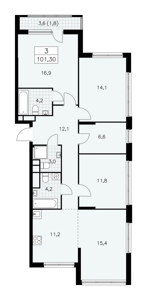Купить новую трехкомнатную квартиру 101.3 м² на 16/30 этаже в ЖК «Южные сады», г. Тюмень за 38233659 ₽ | Агентство недвижимости «Вплюсе.Топ» — Недвижимость России