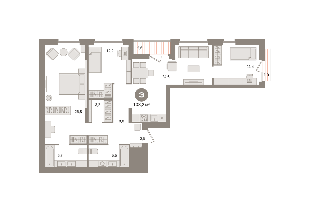 Купить новую трехкомнатную квартиру 103.23 м² на 8/17 этаже в ЖК «Первый квартал», г. Тюмень за 16480000 ₽ | Агентство недвижимости «Вплюсе.Топ» — Агентство недвижимости "Вплюсе.Топ"