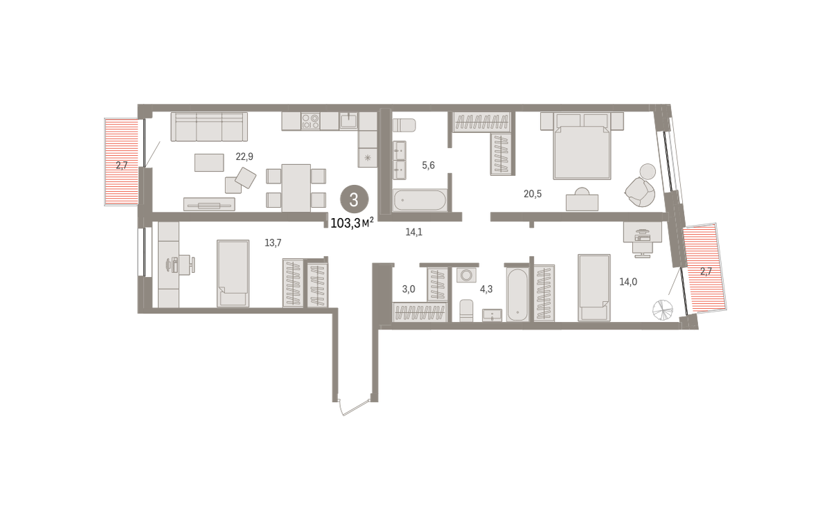 Купить новую трехкомнатную квартиру 103.4 м² на 5/10 этаже в ЖК «Речной порт», г. Тюмень за 13440000 ₽ | Агентство недвижимости «Вплюсе.Топ» — Агентство недвижимости "Вплюсе.Топ"