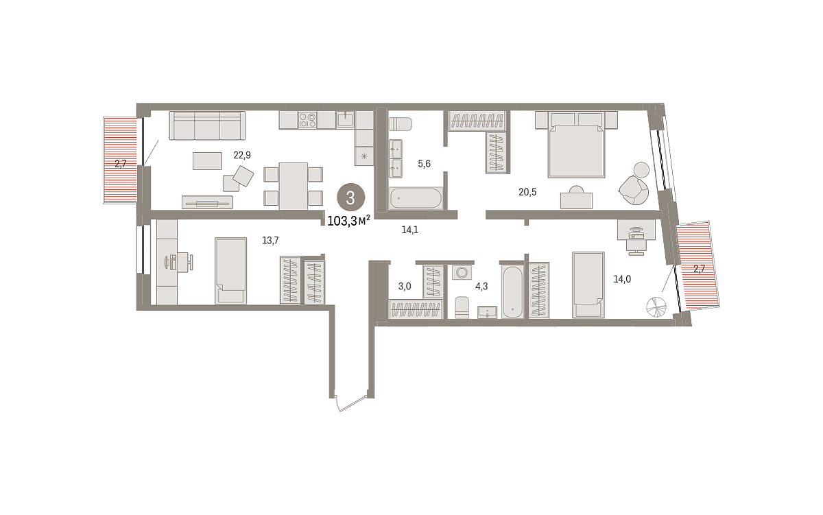 Купить новую трехкомнатную квартиру 103.4 м² на 5/10 этаже в ЖК «Речной порт», г. Тюмень за 13210000 ₽ | Агентство недвижимости «Вплюсе.Топ» — Недвижимость России