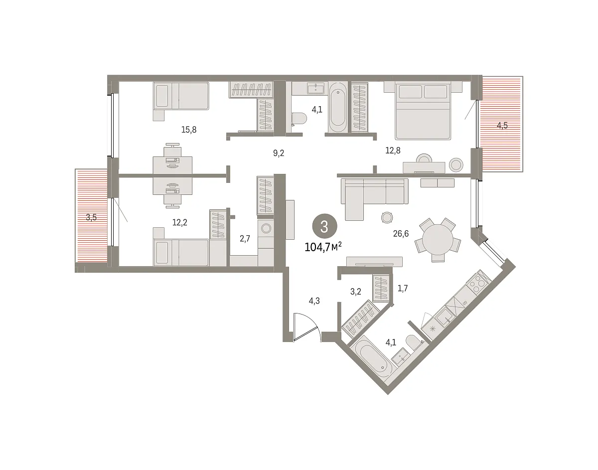 Купить новую трехкомнатную квартиру 104.33 м² на 8/8 этаже в ЖК «Северный ветер», г. Тюмень за 38550000 ₽ | Агентство недвижимости «Вплюсе.Топ» — Недвижимость России