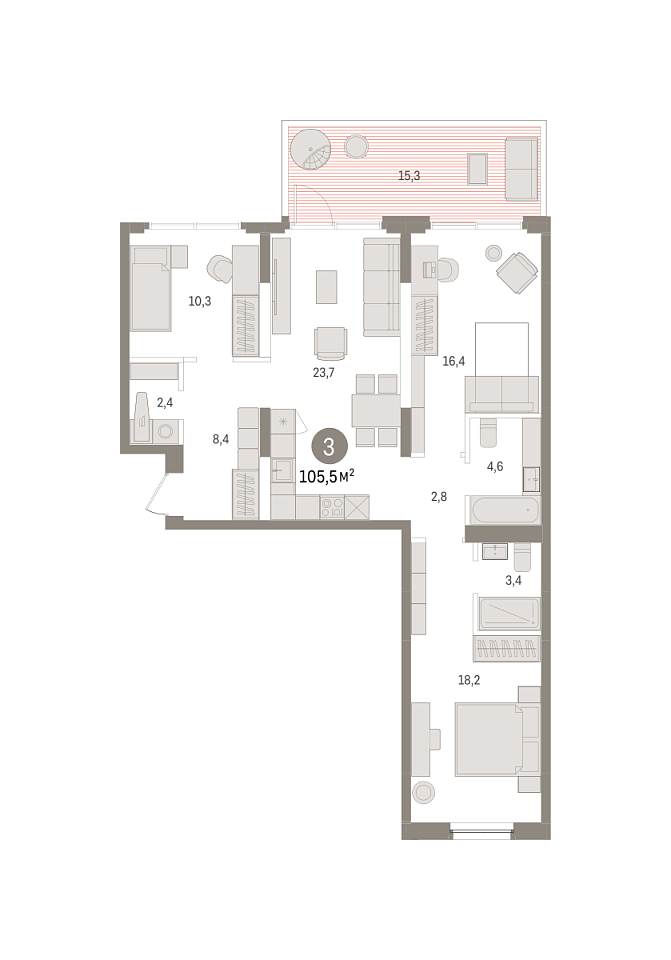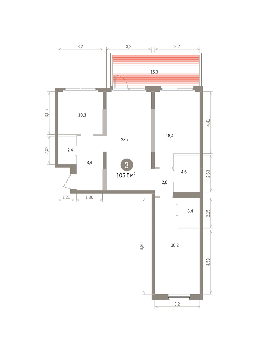 Количество комнат: 3, 105.54 кв.м.