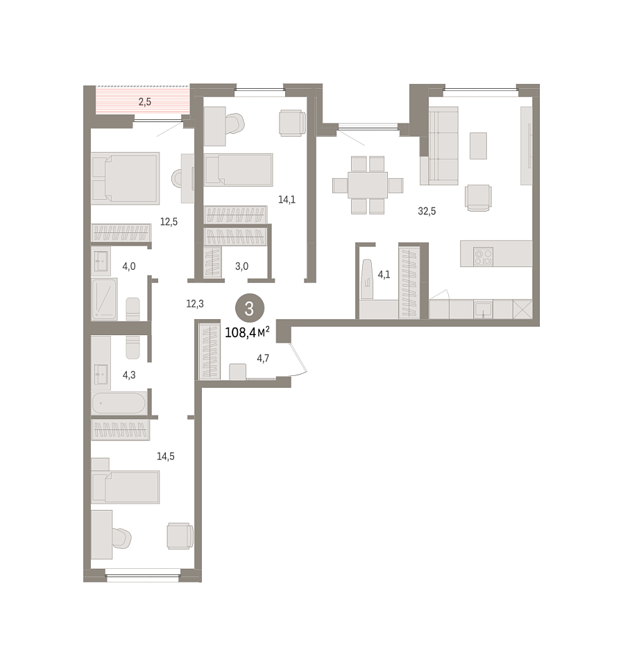 Купить новую трехкомнатную квартиру 108.44 м² на 7/8 этаже в ЖК «Зарека», г. Тюмень за 13930000 ₽ | Агентство недвижимости «Вплюсе.Топ» — Недвижимость России