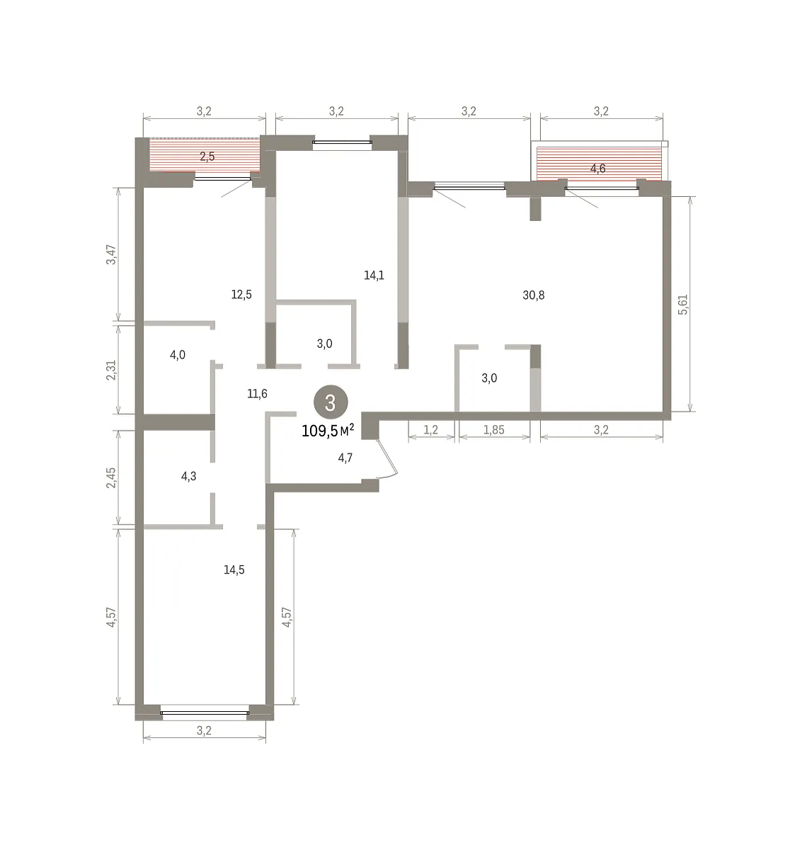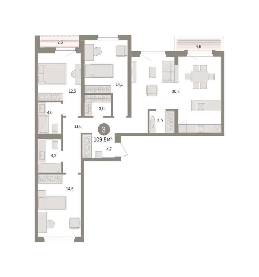 Количество комнат: 3, 109.51 кв.м.