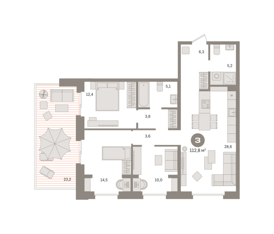 Купить новую трехкомнатную квартиру 112.82 м² на 4/25 этаже в ЖК «Квартал «МОНС»», г. Тюмень за 44680000 ₽ | Агентство недвижимости «Вплюсе.Топ» — Агентство недвижимости "Вплюсе.Топ"