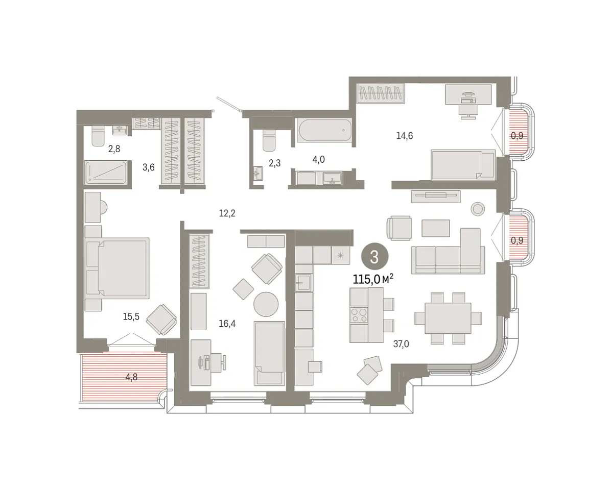 Купить новую трехкомнатную квартиру 115 м² на 6/9 этаже в ЖК «На Некрасова», г. Тюмень за 28120000 ₽ | Агентство недвижимости «Вплюсе.Топ» — Недвижимость России