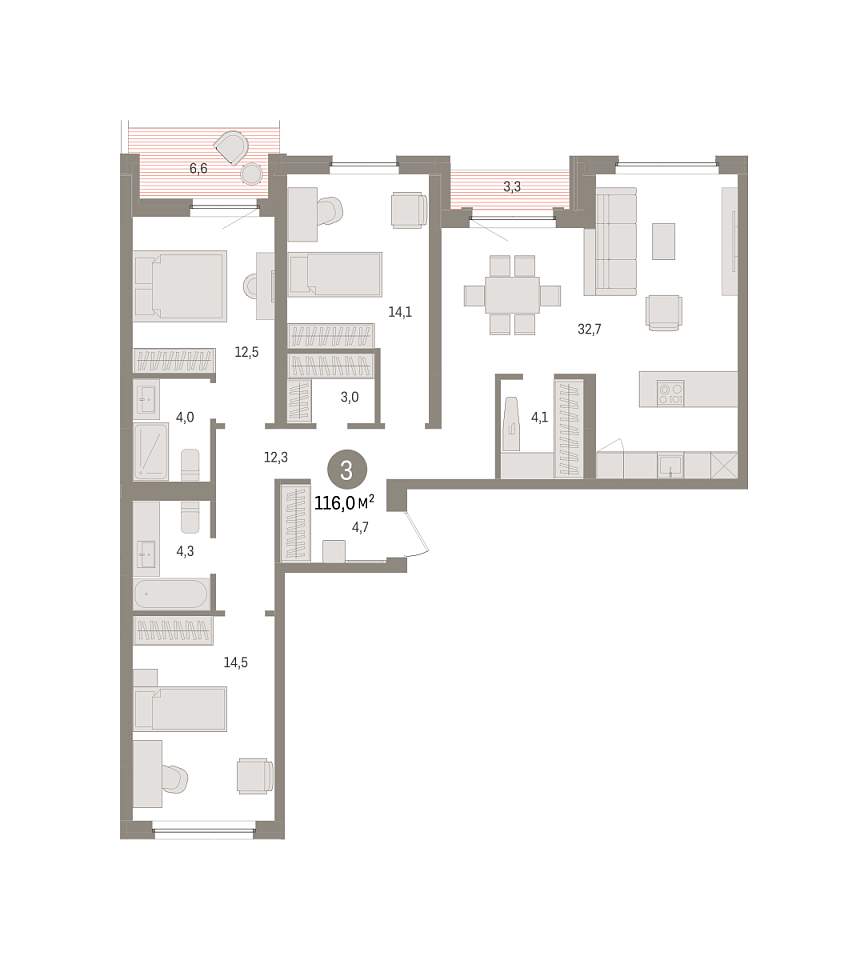 Купить новую трехкомнатную квартиру 116.03 м² на 6/8 этаже в ЖК «Зарека», г. Тюмень за 16370000 ₽ | Агентство недвижимости «Вплюсе.Топ» — Недвижимость России