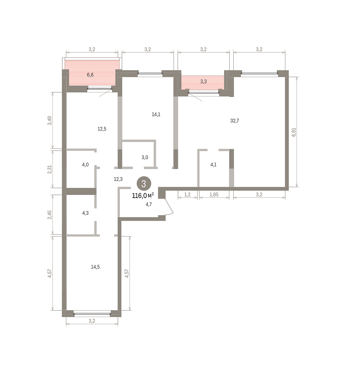 Площадь (общ/жил/кух), м2: 119.61/21.3/22.72