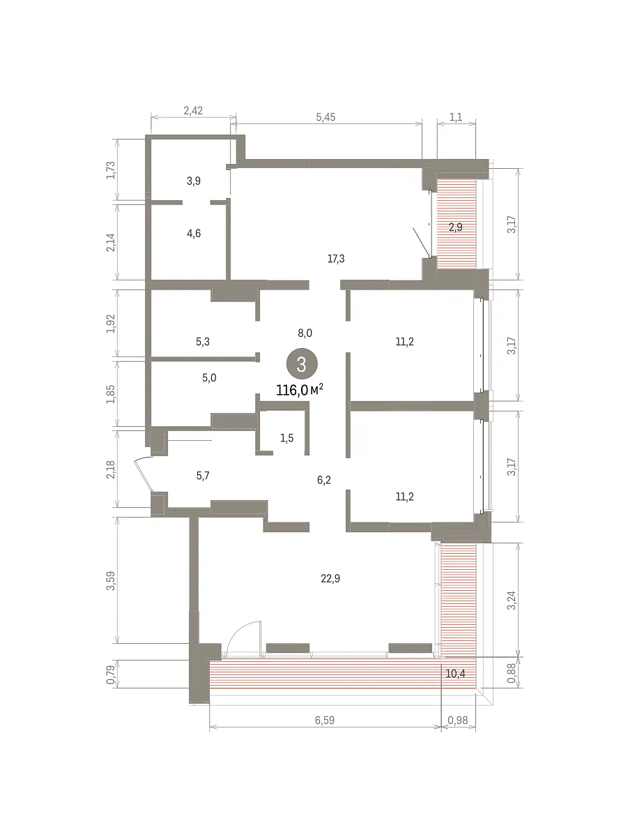 Количество комнат: 3, 116 кв.м.