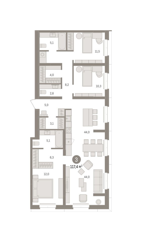 Купить новую трехкомнатную квартиру 117.35 м² на 2/7 этаже в ЖК «Кварталы «На Минской»», г. Тюмень за 19470000 ₽ | Агентство недвижимости «Вплюсе.Топ» — Агентство недвижимости "Вплюсе.Топ"
