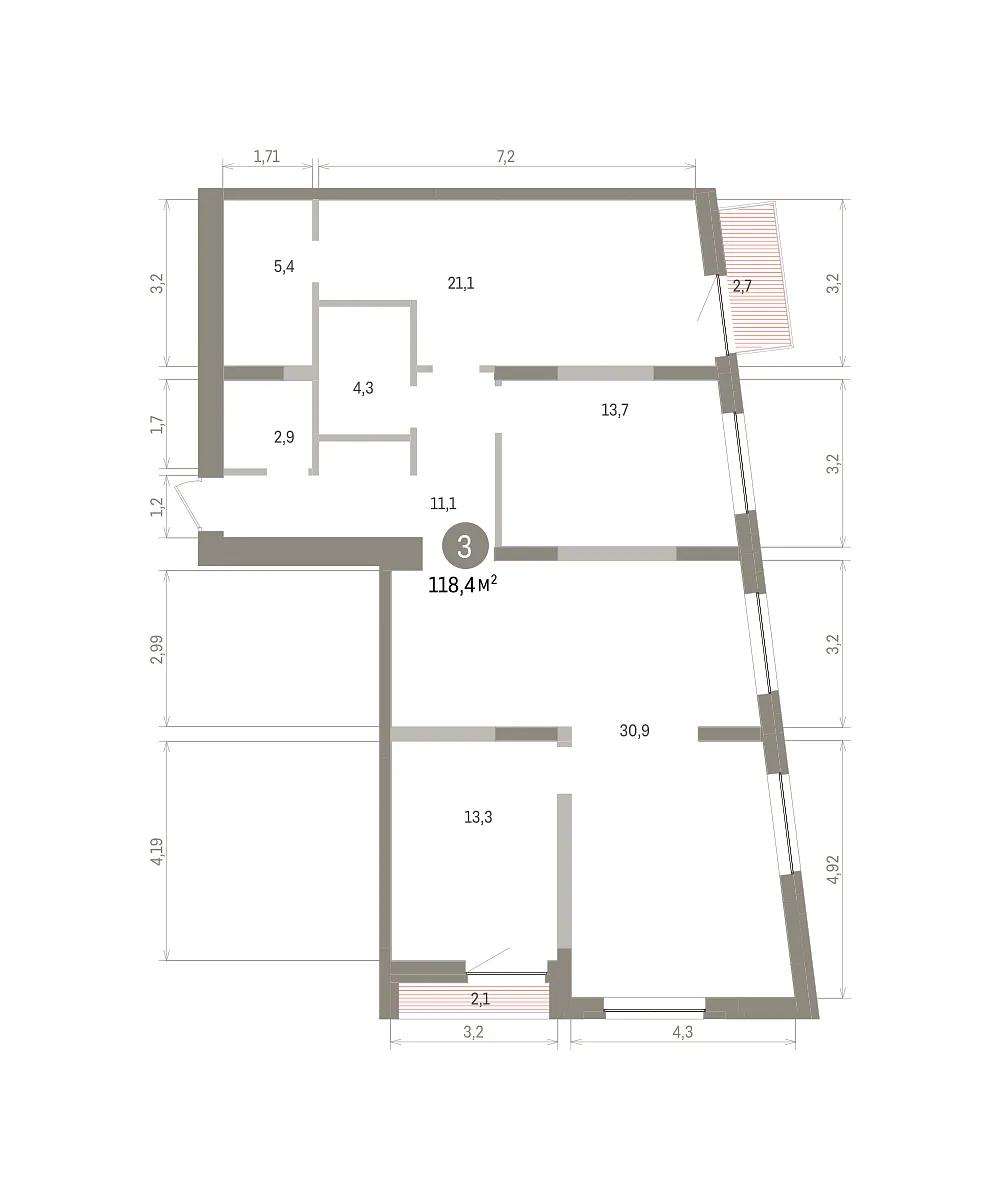 Площадь (общ/жил/кух), м2: 118.5/44.5/41.9
