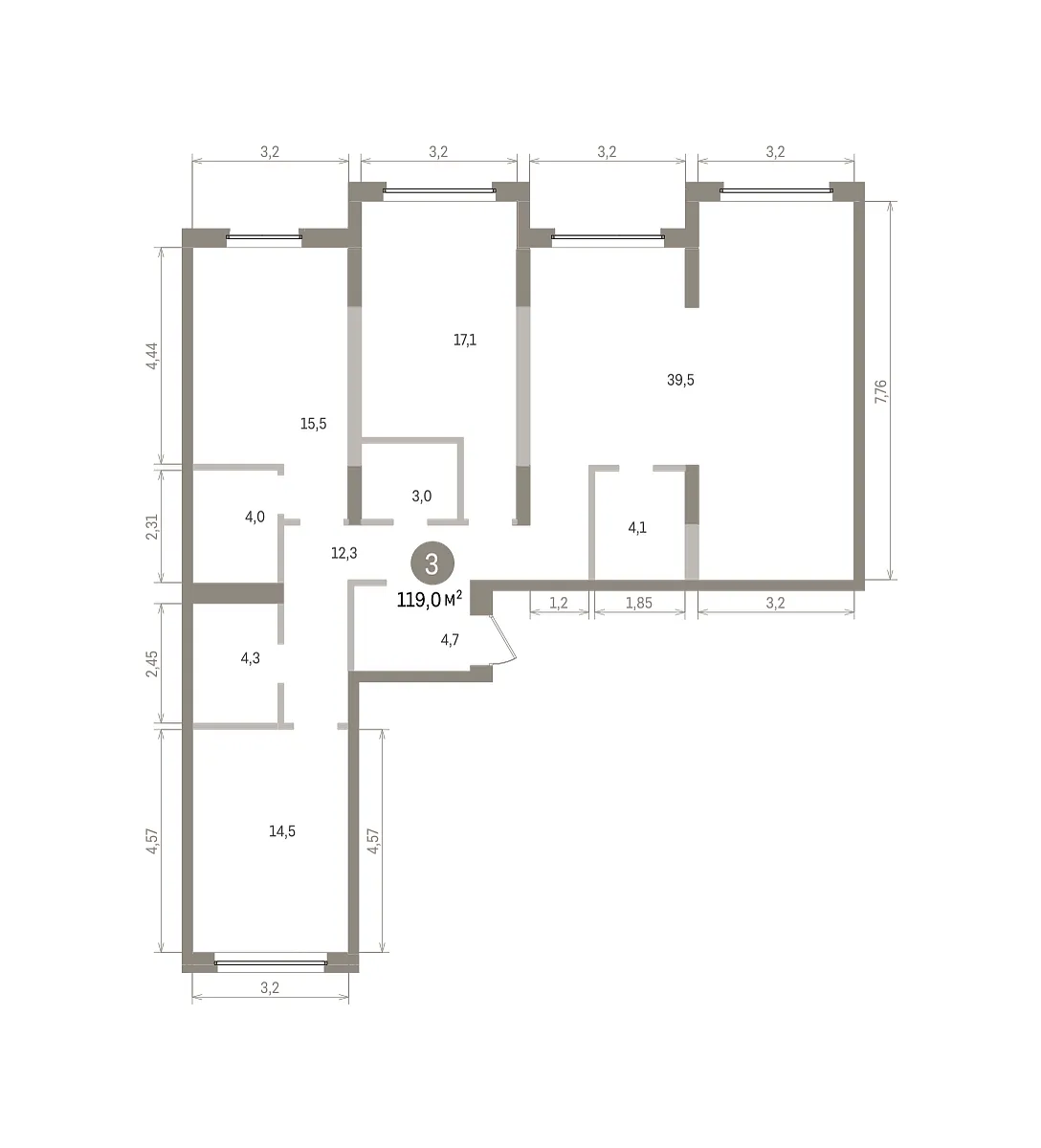 Количество комнат: 3, 119.01 кв.м.