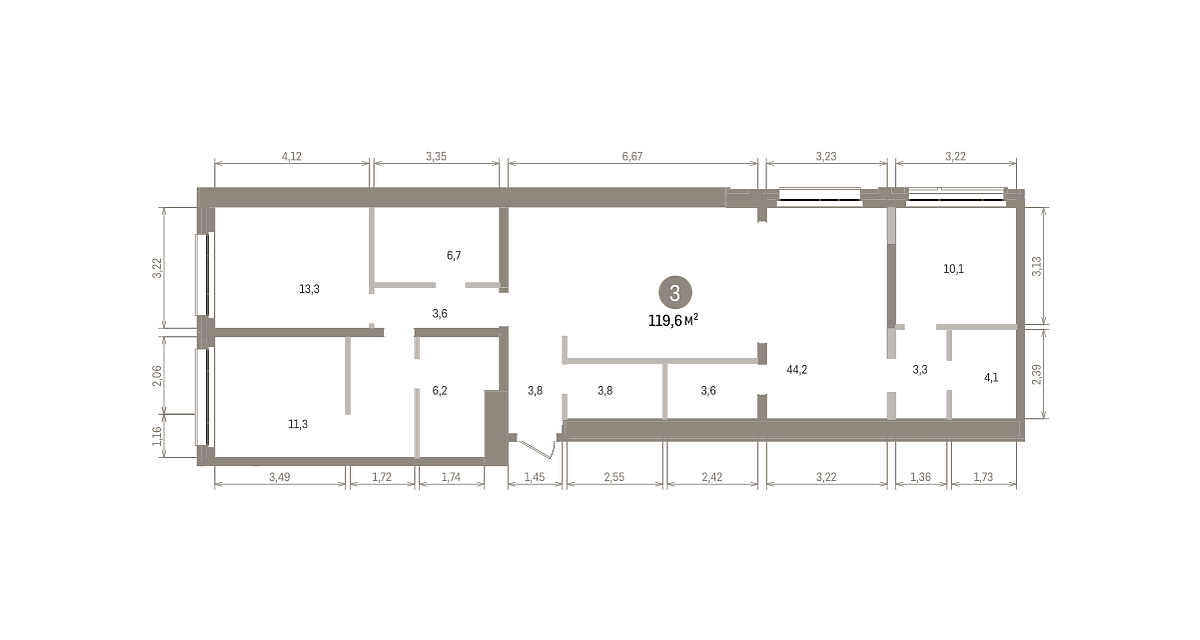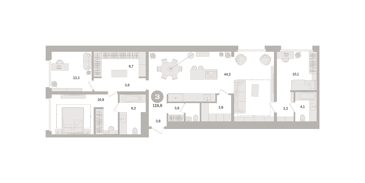 Количество комнат: 3, 119.6 кв.м.