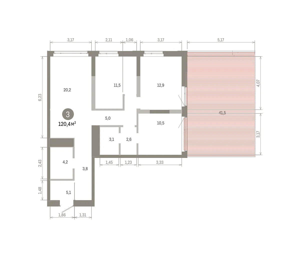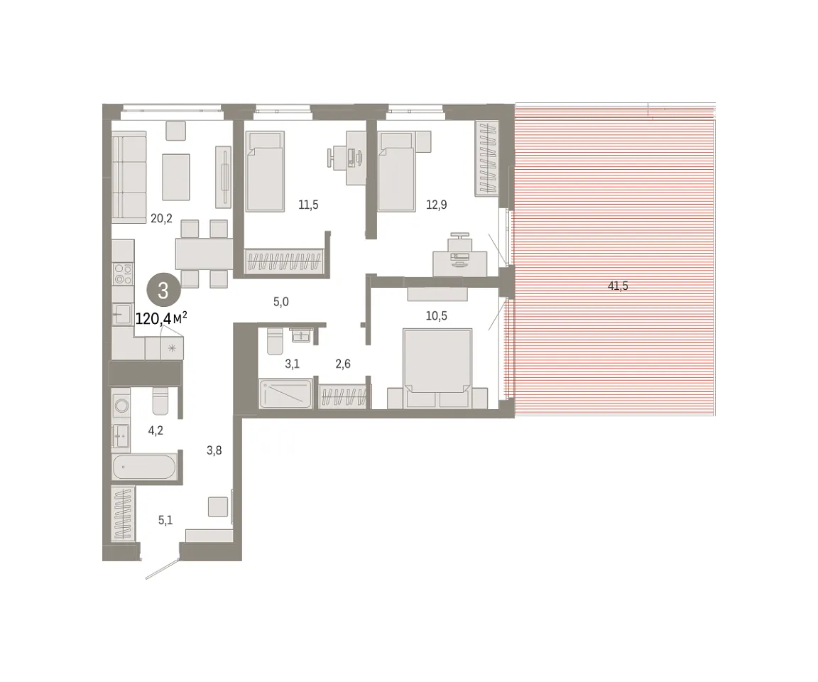 Количество комнат: 3, 120.38 кв.м.
