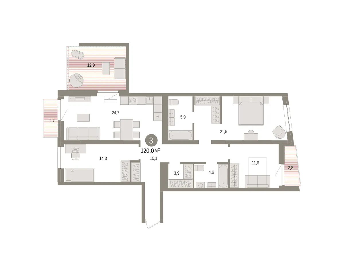 Количество комнат: 3, 120 кв.м.