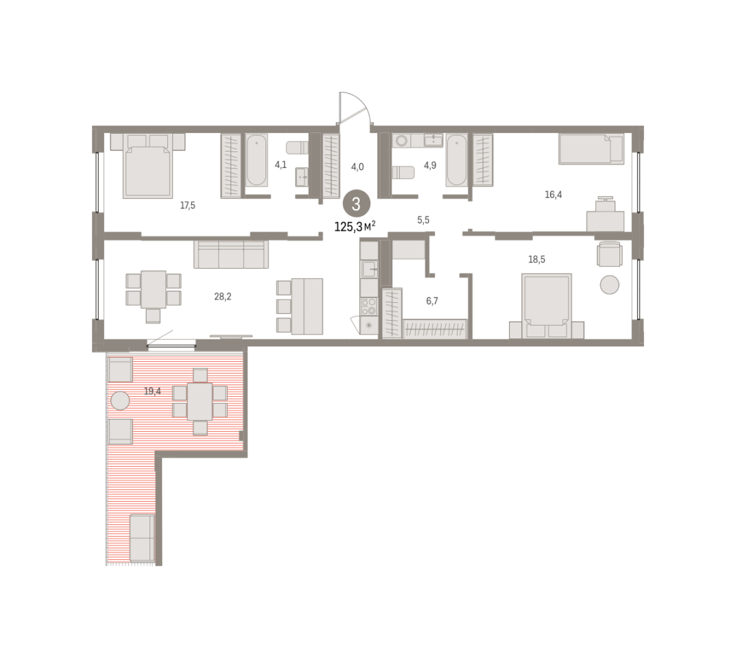 Купить новую трехкомнатную квартиру 125.26 м² на 9/16 этаже в ЖК «Шишимская горка», г. Тюмень за 13610000 ₽ | Агентство недвижимости «Вплюсе.Топ» — Агентство недвижимости "Вплюсе.Топ"