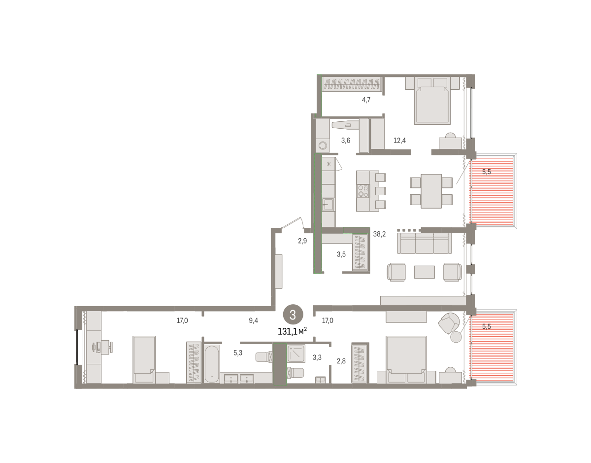 Купить новую трехкомнатную квартиру 131.14 м² на 4/8 этаже в ЖК «Новин», г. Тюмень за 18110000 ₽ | Агентство недвижимости «Вплюсе.Топ» — Агентство недвижимости "Вплюсе.Топ"