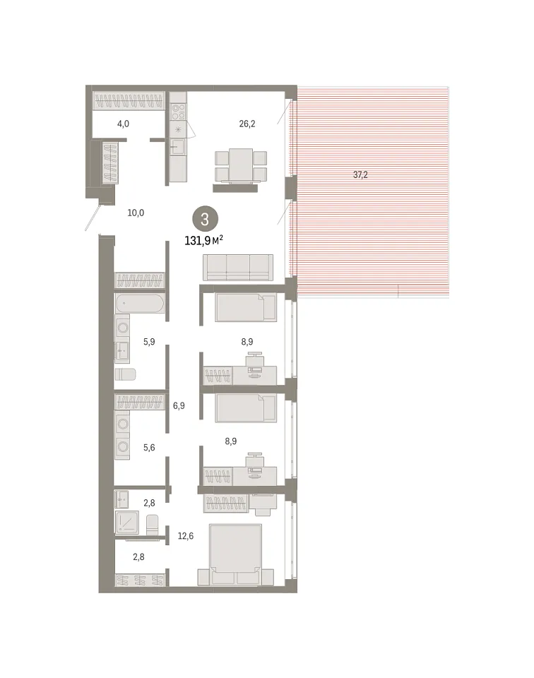 Купить новую трехкомнатную квартиру 131.89 м² на 3/18 этаже в ЖК «Республики 205», г. Тюмень за 17510000 ₽ | Агентство недвижимости «Вплюсе.Топ» — Недвижимость России