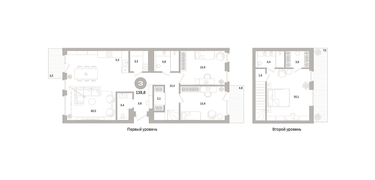 Количество комнат: 3, 138.83 кв.м.